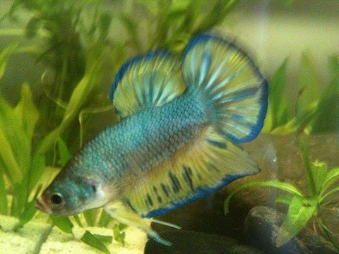 I love him! But of course, he can’t just be ‘My blue and black fighter fish!’ Because he needs a name! And you guys helped me name Apollo, so maybe you can help me name the fishy fish too? ![]()
