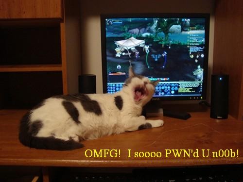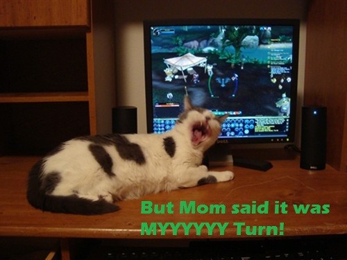 I’m not familiar with WoW enough to attempt a caption. Just wanna say what a great pic it is! What’s kitty’s name?