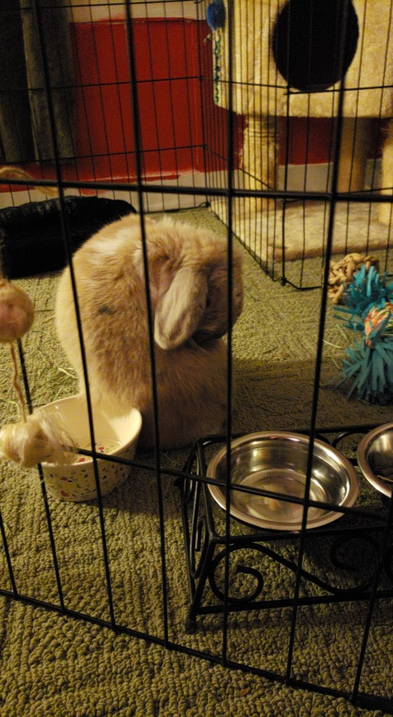 And here he is just a few hours after being home! I swear, he acts like he didn’t just have some semi-major surgery/extremely traumatic event, I actually had to step in because he was getting too excited in the recovery pen! Thankfully, he is already eating, just not quite what he normally does. He has also passed a few poops so I’m pretty sure he is A-okay, but I might feed a little Critical Care just to make sure he is definitely moving things along in there. He also decided to say ‘screw you’ on the subject matter of the new bed I bought him for recovery, and just peed all over the thing and sat in it!