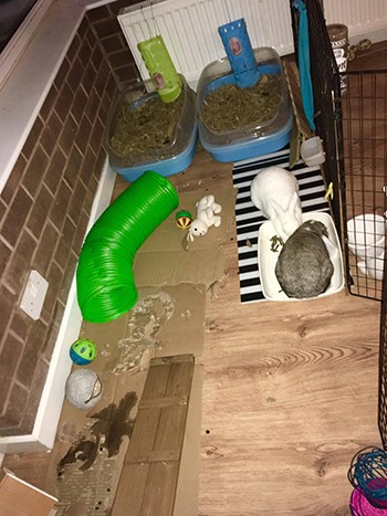 I’m also a bit more concerned about this lately because I’m wondering how to make this easier long-term. I would like to keep them as house bunnies, but my husband and I are discussing trying for our first child soon. Cleaning out the bunnies’ home 2-3 times a day isn’t going to be possible with a baby in the house too. The backup plan would be a big hutch and run in our garden…but I really want to get this resolved so that doesn’t have to happen, and to keep them as our lovely house bunnies. They never used to poo and wee everywhere all the time, this has all happened since our 1 week holiday in October. If change affects them that badly too, I can’t imagine how they’d be with a baby here too and a bit less attention until a routine is sorted.