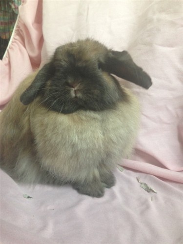 We had looked on the website of the local humane society where I try to volunteer on Saturdays. My boyfriend was dropping me off today and we hadn’t seen any on the website that really jumped out at us or that I didn’t already know their personality. So my boyfriend came inside just to peek and see them all. So we go in and are pointing out which ones we think are cute and I’m getting them out so we can meet them…..and then we come to Sam. Sam is a brown Holland Lop who was not there the last time I went. I stuck my nose up to the cage because he was poking his out and he gave it a lick! So I pull him out and we are talking about how he doesn’t mind being held and snuggled further into my neck so I hand him off to Aaron to hold and begin reading his papers….