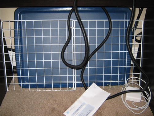 Unfortunately, you can’t just teach her not to chew your wires. The best thing you can do is buy cord covers and block the area off. Let me get a picture of how the underside of my desk looks ….