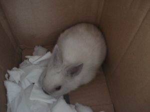 Katnip- Ooh good idea! Will do! Unfortunately I didn’t think to ask how old. I had a feeling the employees new nothing about bunnies and would definitely not know the breed so I didn’t bother to even question that. All the others were bigger then my lil guy so that’s why I think he’s/she’s a runt… they all looked around a month old. Too young to be away from mother. Poor bunnies. I wanted to question there supplier but I doubt they’d tell me the name.
