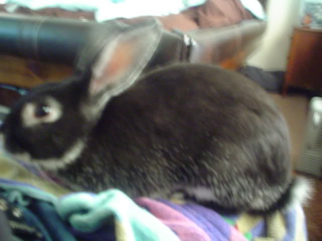 Hey all, im obviously new here. My name is Mellisa…I am currently owned by a black silver marten buck,”Blackberry” and a dark sable female Netherland Dwarf, “Bambi” [name subject to change]. Both are rescues. Blackberry was found on the side of the road in the blackberry bushes – someone obviously just dumped him. He was found with another bunny, a chinchilla doe we named River, but sadly she got sick and died after all efforts to help her. We found that she had Mucoid Entritis when it was too late. Not too long after, I recieved a mini rex named Patches, who unfortunatly was too neglected and we think he died from hairball, still unsure. He was perfectly fine in the morning and was gone when i came home 5 hours later…Just Sunday i adopted Bambi from the Tacoma Humane Society. My first “real” adoption ever. I was so proud of myself! I am not new to the rabbit thing, but i am still learning the “house bunny” thing. I raised rabbits for show for 5 years when i was younger, showing in 4-H and grew out from there to show ARBA all over the state. I raised Netherlands and Dwarf Hotots for show and pets. Now, my buns are strictly pets. I think i spoil them more than my cat haha. Right now Blackberry is intact so he will be scheduled for a neuter as soon as i get money for the procedure [now that i have approved vets for bunnies-thanks to THS!]. Bambi is already spayed but you wouldnt know it, she definatly has attitude…but i love that in her.
