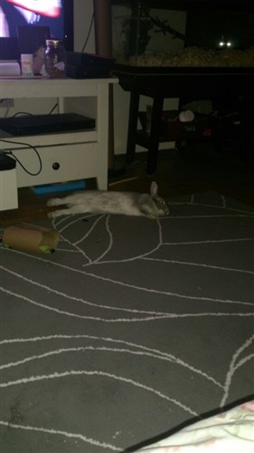 Aww, love the dead bunny flop. Powder flops down so hard you can hear a very audible THUMP when he does it.