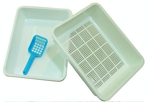 I’ve seen this sort of thing for using wood pellets. The top part acts as a sifter to shake the broken down pellet material. I think it could be used without the litter material in top though urine will prob still pool on top a bit. If a litter material is touching underneath the grate part, that could help.