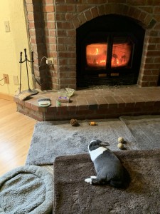 The picture of him is not today. He just loves the fire. But he is sitting by the fire at the moment, being his cute self. He’s not really sitting and sulking with his back turned like I’ve seen him before when he was sick.