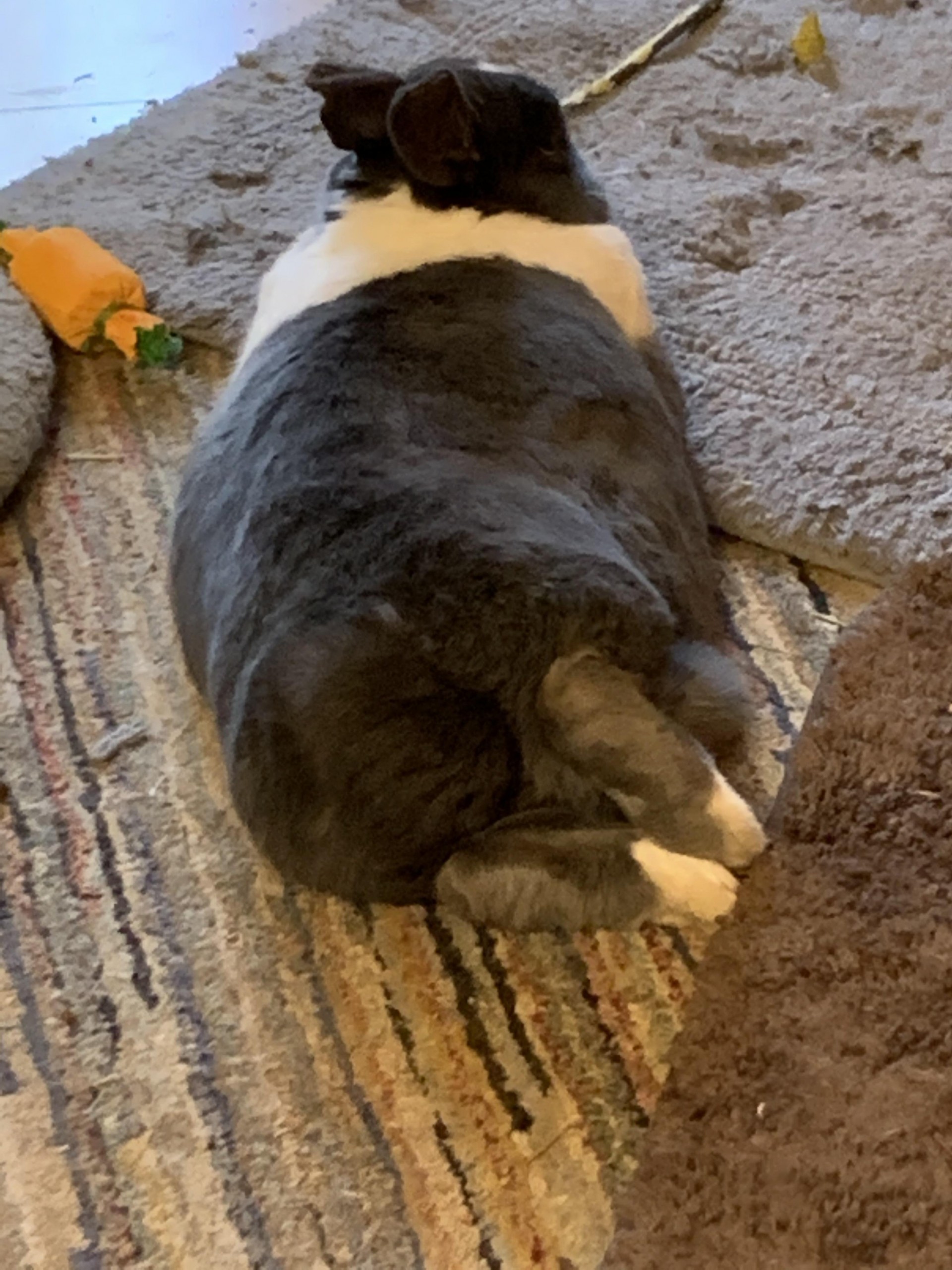 Weirdly shaped poop, tiny poops, even splotchy, mushy poop with various degrees of stinkiness is more or less par for the course when the bunny gut starts up after a bout of gas or stasis. The fact that there is poop is what’s really important. Poop is 💃 (happy dance).