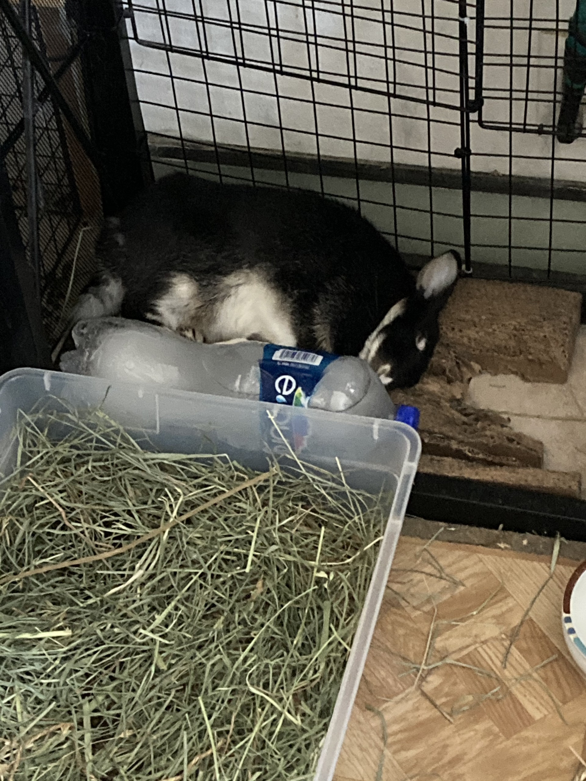 @HipHopBunny it’s kind of wedged by that black frame (it’s actually an aquarium stand that she likes hanging out under)
