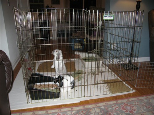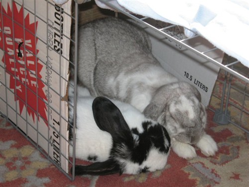 As long as Otto seems to want to avoid her, you can proceed to a larger space. I never used THAT large of space again for just two buns as I did for Lint/Mops, it was really extreme because Mops was so afraid but Lint was so attached. Some buns I had tried in too large an area and found they just formed ‘camps’ in opposite corners from one another. Selection of the right size space is equally as important as is selection of potential bond-mates.