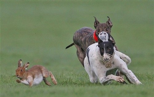 The main focus of campaigners’ efforts is in pressing our government to ban hare coursing, a “sport” in which both hares and rabbits are used in a most cruel fashion. The hares forced to run from greyhounds in racing competions called coursing events..and the rabbits are used to train the greyhounds. The greyhounds themselves are not to blame of course…it’s the people who arrange these “sporting events who are responsible.