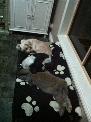 PS – Sorry everyone, but my photo’s always seem to be the same – cause that’s all the do… *SIGH*! Lol! Sam is in bed with Ted, and that’s George and Frank with Henry on the dog bed…..  Lol!