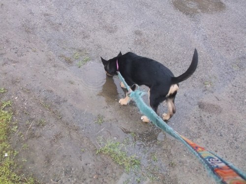 Tilly also playing in the rain: