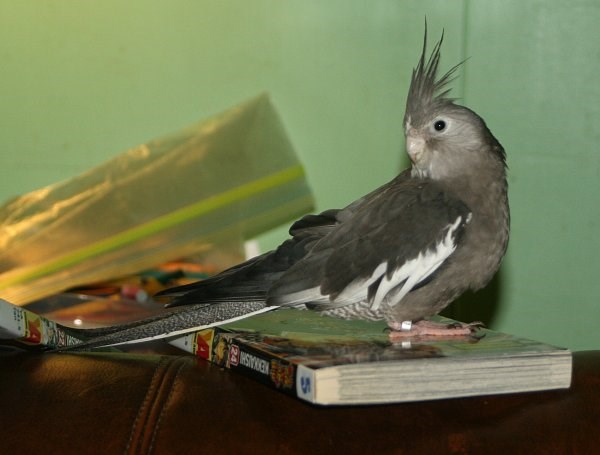 Here’s my sister’s cockatiel Kury feeling left out, and our dog Remus being confused