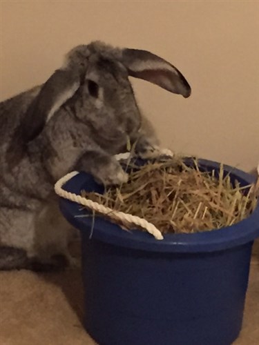 Here’s one I just got of Gus. Not as cute, but fun anyway. Hay is always tastier out of the bucket I keep nearby for refilling the litter box with. Whatever gets him eating more hay. Usually it’s dumped on its side and spilling everywhere. This was cuter