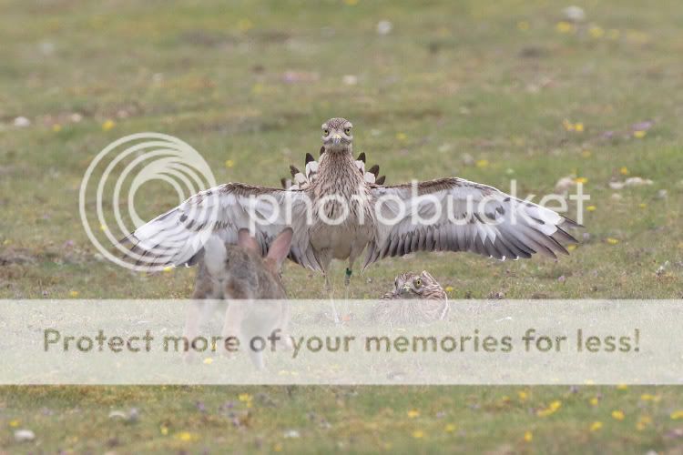 Anyone who has spent hours watching a Stone Curlew do little more than blink in the heat haze will enjoy this photo. Great pictures tell a story, and here’s an insight into the everyday life of a breeding pair. Grazing, particularly by rabbits, plays an important role in the recovery of Stone Curlews in the Brecks, along with the efforts of dedicated farmers, volunteers and conservation staff. Peter can only have had a moment to capture this, with the Stone Curlew’s wings spread to defend its mate from the oncoming rabbit that he has caught in mid-leap.