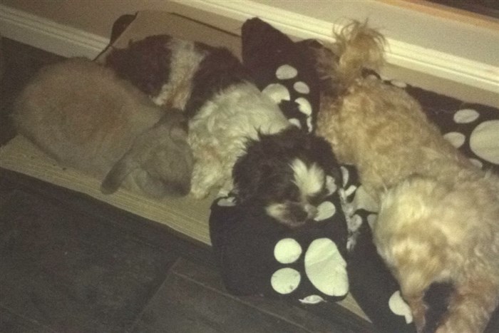 Jenny was asleep in a darkish corner, but she and Gina are the same size anyway