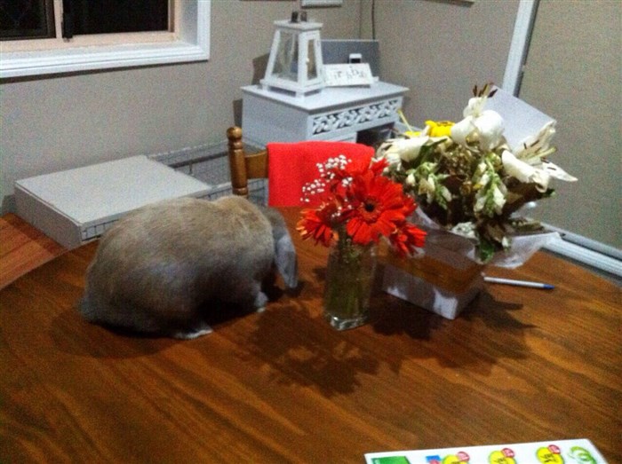 Henry is the BEST bunny! He ate your birthday flowers!!! I didn’t remember that! Horrendous bunny!
