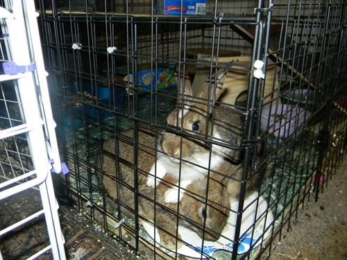 third one is Big Blue, 6 months old (17 lbs!) Blue Flemish Giant