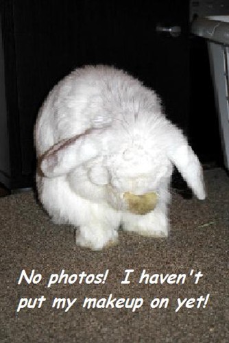 Bindi is asking a favor of those of you on Facebook. He entered a picture in the “Leaping Bunny” cutest pet photo contest. Please go to “The Leaping Bunny” Facebook page, find his pic by scrolling down and click “Like”. He disapproves of anyone who doesn’t vote. The Leaping Bunny is a website that supports Cruelty-Free products so I think it would be neat for a bunny to win.