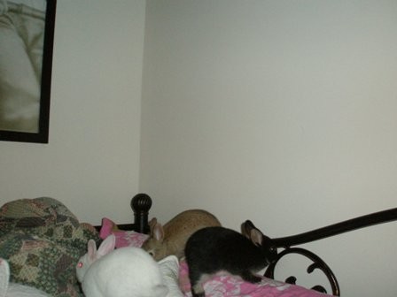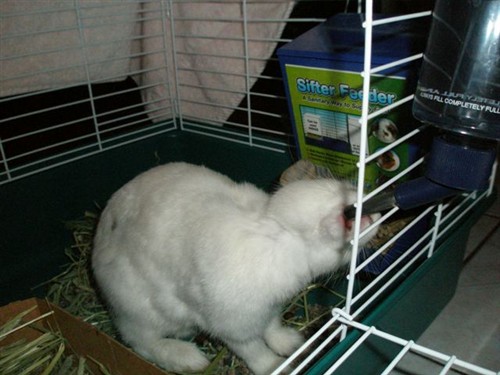 This is Chomper my wanna be guard dog, he is a really funny and active bunny, he might think his a guard dog since he gives the mail lady a hard time when she brings the mail, wont let her step into the porch, funny thing to see, she goes left.. he goes left, she goes right… he goes right,lol!