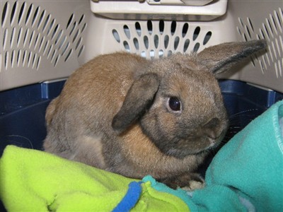 He is doing really well!  He is a real love-bunny — LOVES to be held and petted.