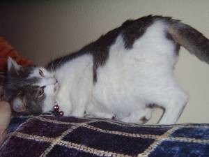 HERE ARE PICTURES OF ALL MY KITTIES. I POSTED TWO OF SWEETPEA (ROUND-EYED RUMPY MANX) I HAVE THREE MANX KITTIES, THEY ARE SISTERS AND THE OTHER ONES I RESCUED AND ADOPTED. I THINK HUNNY BUNNY MAY THINK SHE IS A CAT SOMETIMES
