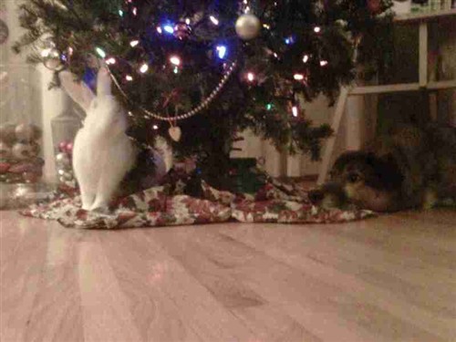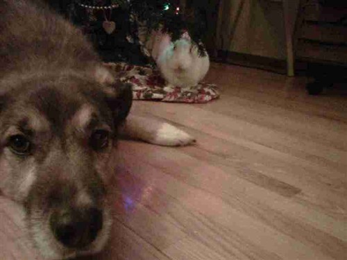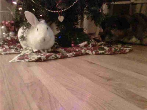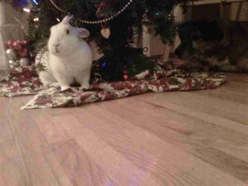 Love to one of Pinky sniffing the tree! I just love these buns and dog pics.