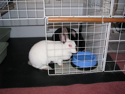 (The cardboard house and tunnel idea was taken from a wire cube house on display at RabbitCondo.com.)