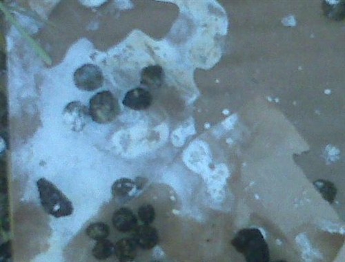 I came home this morning and went to check on Boo and he has alot of his cecotroes ( little black poo’s) laying around and hasnt eaten them yet… i have seen them around before but never this much. Also I was checking hs dig box for more of the black poops and I saw a whole bunch of white stuff… kinda looks like paint or bird poo in his box.