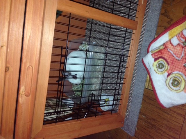 So, yesterday I set my bunny up in a new hutch (indoor)… It’s a 2 story hutch (50″ long, 26″ wide and each story is 20″ tall). I have it set up with the litter box on the ground floor in the rear left corner with her hay cage right above it, her water bottle in the front left corner and her pellet bowl next to that…Upstairs I have a fleece blanket on the floor and in her enclosed area I have her bed. The bed is like a fluffy cotton. So anyway, there’s plenty of poop and pee in her litter box, a few, maybe 4-5 poop balls on the ground floor carpet, but then in her bed, she pooped and peed yesterday and then again this morning she pooped in her bed. Her original cage was a 36″ standard metal cage with Kaytee clean and cozy bedding covering the whole floor. In there she only pooped and peed in one corner, the rear left corner, when she came out she never pooped on the carpet in the room I let her out in, she always went back in her cage. In her new hutch I figured i’d try litter in her litter box, so I put Kaytee critter litter in it. What do I do?!?!?!?