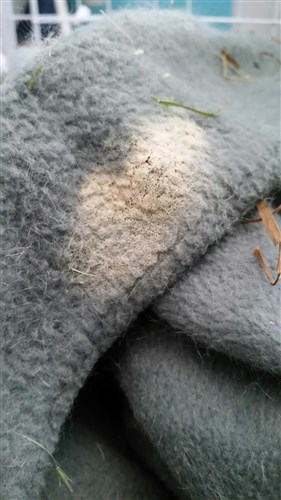 After I took out the bedding I replaced it with a pink blanket. Moments after she went in, did the same thing in the same corner, just a few little spots (picture with pink bedding).