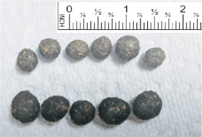 Anyway, he’s also underweight slightly (1650g currently, they’d like to see him closer to 1800g since we can feel his spine a little too easily). I’ve noticed his poops now are wonderfully large and round, but also darker. (bottom row. top is his normal prior to the incident). Am I correct in assuming this is likely because I upped his pellets? (from 1/8th cup to 1/4th cup, in attempt to fatten him up). Is there a better way to put weight on him? I included a picture for reference.