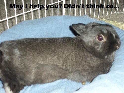 The subject of intentional breeding or meat rabbits is prohibited. The answers provided on this board are for general guideline purposes only. The information is not intended to diagnose or treat your pet.  It is your responsibility to assess the information being given and seek professional advice/second opinion from your veterinarian and/or qualified behaviorist.