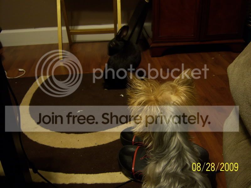 You have a nice looking furfamily too.   So bunny likes to bite dog legs  lol