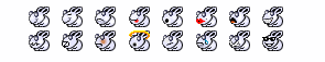rabbiticons:  sitting bunny,  running bunny,  sleeping bunny,  disapproving bunny,  jumping bunny, growling bunny,   begging bunny,  etc