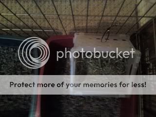 The box is secured at an angle with a loose ziptie and a dogclip around the xpen bar… I can just unclip to fill it up and I don’t have to cut the ziptie (ever…)  Obviously the container is half empty when I took the pic, but I fill it up to the tippy top every evening.