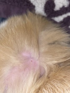 This was taken an hour ago. I put miconazole on the affected area. I’ve been seeing him itch it more since then.