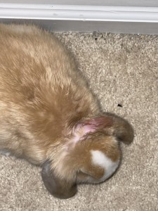 Hi! I recently got a pet bunny (named him Lucah, 3 month old Holland Lop) from a licensed breeder. I’ve only had him for about a week and a half now. A day later after I got him, I was petting his head and I felt some type of scab on the top of his head close to his left ear. I didn’t really think about it much since I didn’t see him itch it constantly and I thought maybe it was a healing bite wound considering he was around other bunnies. A few days later I took a closer look and saw that the scab was slowly disappearing, but that was when the itching started. There seems to be some hair loss, irritation, and dandruff (?) as well. I gave him ivermectin orally yesterday and put miconazole on the area earlier today. Any idea on what it is and advice on what I can do?