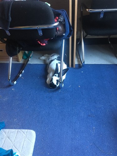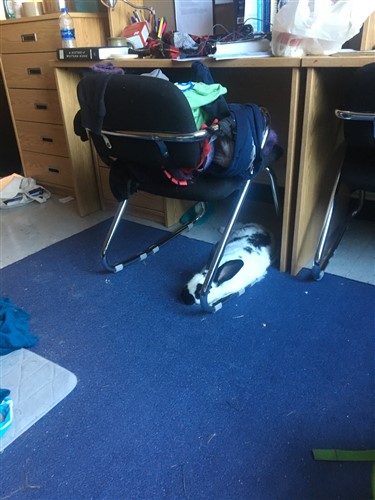 Whenever Gizmo takes a nap, I sometimes have to double check he’s okay! I’ve never had a bunny that’s such a lazy and relaxed sleeper; Bonnie slept in a loaf, and if she was super comfy, occasionally with her feet out to the side. Does anyone else have a bun who sleeps so happily? (Pardon the chair of clothes, it’s finals week at my school and I am quite sick).