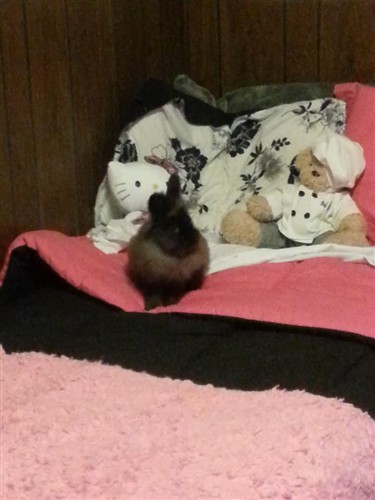 for the past couple of weeks i’ve been clicker training Loki, and he is doing great. he is so smart and picks up super quick. the first thing i taught him was “Go to bed” meaning his cage, usually this works all the time so i have no trouble getting him to go in at night….well tonight he got me good and this is what happened when i told him to go to bed: