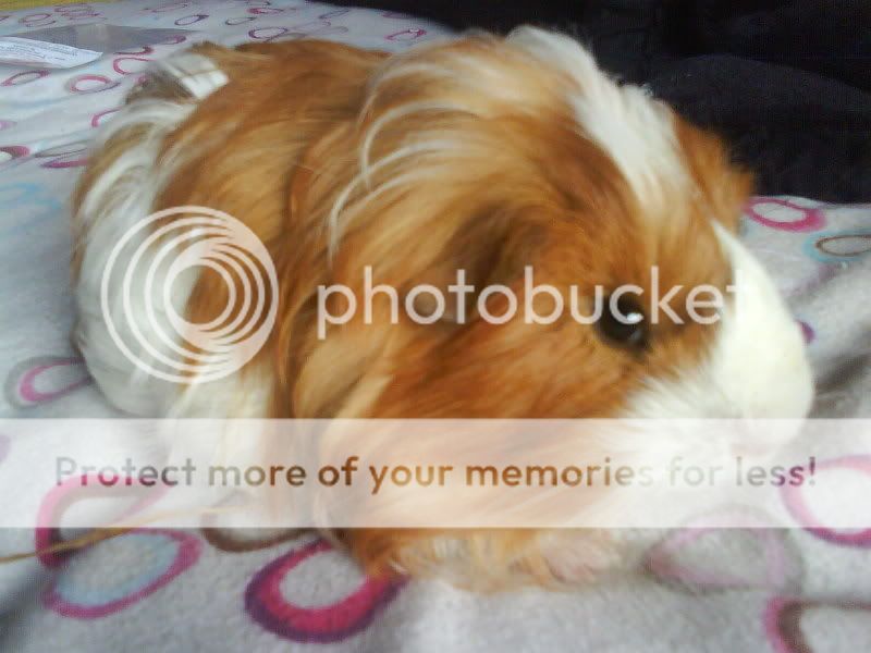 “Ringo” is the latest addition to my ever expanding, ever hungry furry family. He’s a castrated sheltie guinea pig approx 2months old. Was intended as a friend for Squeaky but I think hes still a naughty teen and she doesn’t like him being the mature woman she is. Will keep trying when he’s grown up more. WIsh me luck! Very cute and very spoilt little piggin, An absolute mummys boy.