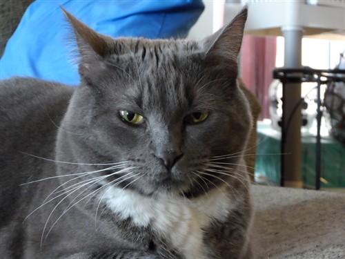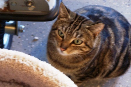 My bridge kitty (Buddy, AKA Butterball). He always liked to rest his chin on the rung of the dining room chair.
