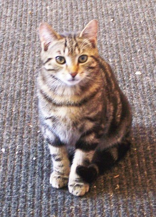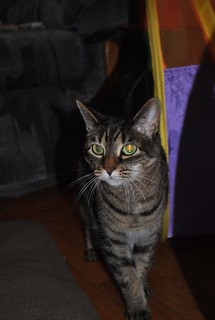 This is Julie. She was adopted from the local shelter as a kitten. She is a very friendly cat but is a little skittish. She was my brothers cat but he stopped caring for her.