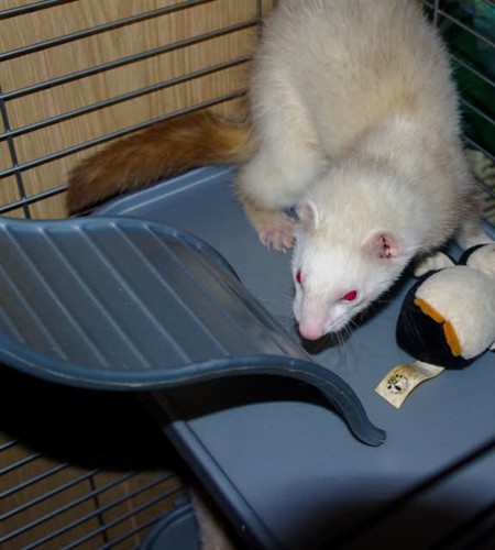 Smokie my old dude he will either be 7 or 9 this year. This ferret has given me many heart attacks! He is never still and loves to get up on high shelves and knock everything off. You try to block areas off and his butt will find a way through. He was recently diagnosed with adrenal disease and lost all of the hair on his tail and butt.