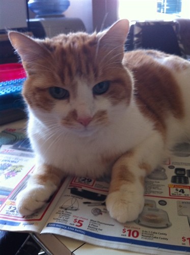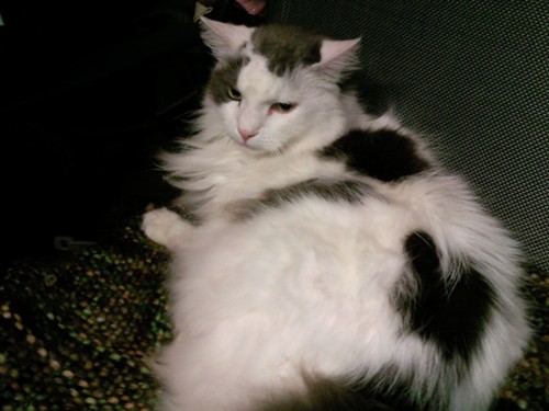 Finally have a chance to post a pic of my late cat, JayJay. He was a stray who adopted us years ago. I thought right away he was a boy but my mom thought he was a girl because he had a flabby stomach. Thinking he was pregnant once