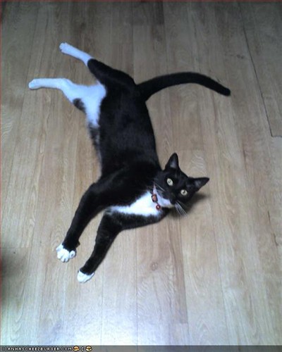 Yeah I used to have one of those loft beds where you climb up the ladders to your bed and he used to climb up and down all the time just the thing and then one day (just after we got betty – she was still a hyper wee pup) she chased him through the house and he jumped up the ladders then onto a wardrobe just across from the bed (like beside the ladders it’s hard to explain, he would go on the wardrobe all the time as well though). Because he was panicked he climbed up onto some cardboard boxes that were on there and they fell when he was on them