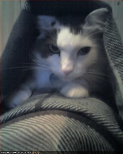And then there are the two cats that me and my mom rescued. The live outdoors but we give them food and shelter in the winter/bad weather. Momma cat is feral (and yes she almost always looks like she wants to kill you):