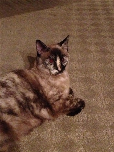 This is Savana, aka the Kitten (we call her that because she’s still kitten-sized at 5 years old). She has a very strange and unique personality and she loves to play and watch the chipmunks and birds from the window.