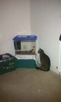My two fish ginge and rebel fish (haha silly names). We were staying with a friend and the cat belongs to her ![]()